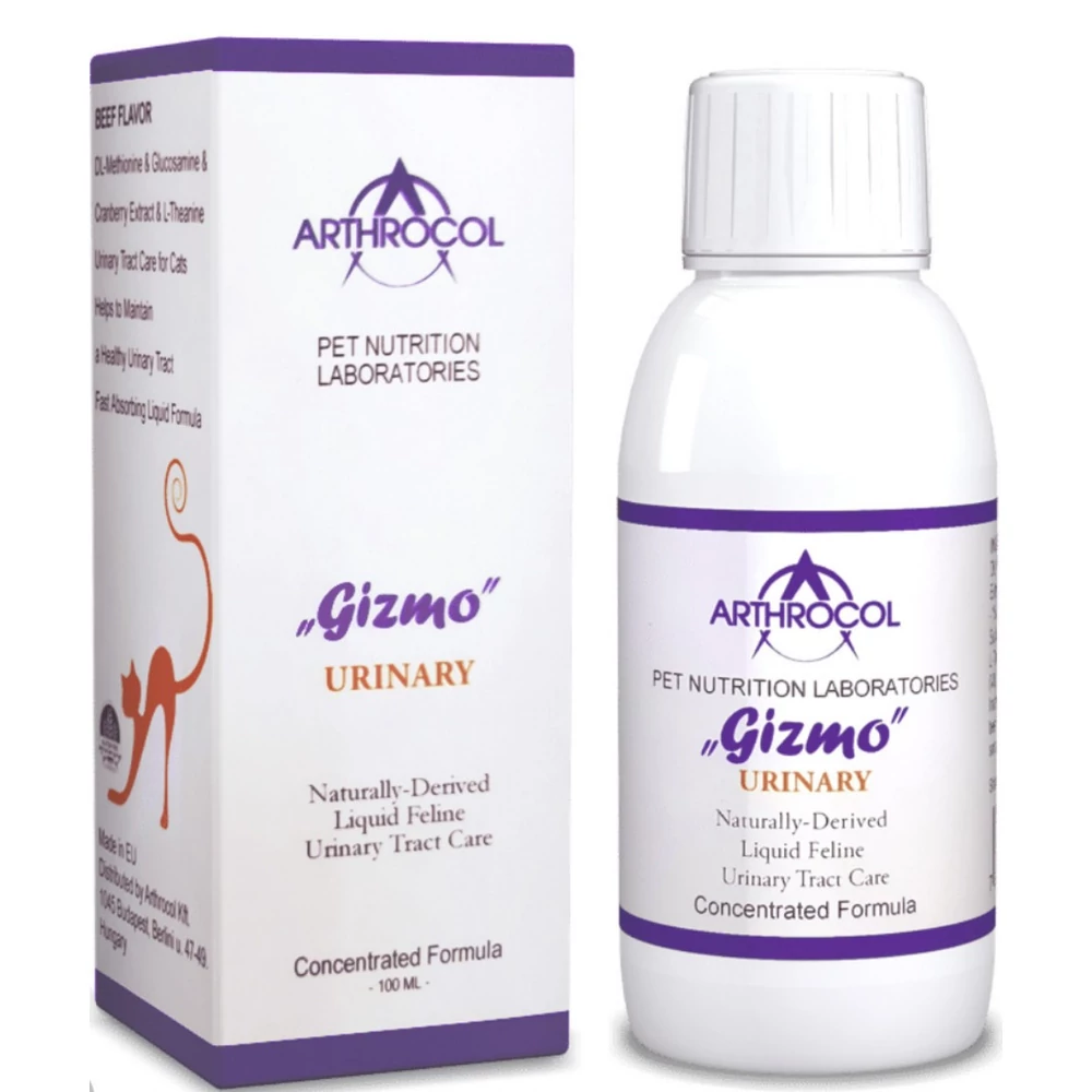 A Gizmo – URINARY, mely elődjének jótékony tulajdonságai mellett számos hatóanyaggal kiegészült, így kimondottan a macskák esetében jelentős esetszámban előforduló, főként stressz alapú húgyúti problémák kezelésére ad lehetőséget a diéta és “urinary” típusú tápok mellett. Jelenleg ez a legkomplexebb hatóanyag tartalmú készítmény a piacon, mely nem csupán a vizelet PH értékének csökkenését segíti elő. A húgyutak savasítása érdekében a C vitamin mellett tőzegáfonyát és metionint is tartalmaz, melyek együttes hatása segíti a húgyutakban található képződmények (homok, kő) feloldását, kialakulásuk megelőzését. A készítmény glükozamin tartalma hozzájárul továbbá a húgyutak belső falának regenerálásához, az L-Theanine a gyakorta kiváltó okként emlegetett stressz csökkentését célozza. HÚGYÚTI MEGBETEGEDÉSEK MEGELŐ- ZÉSÉRE FOLYÉKONY TÁPKIEGÉSZÍTŐ MACSKÁK SZÁMÁRA Dl-Metioninnal, glükozamin szulfáttal, tőzegáfonya kivonattal és L-Teaninnal. Gyorsan felszívódó likvid formula marhahús aromával. Adagolás: – 5 kg alatt 2 ml – 5 kg felett 3 ml naponta kétszer, közvetlen a szájba vagy a táplálékára fecskendezve. Az ajánlott fogyasztási mennyiséget ne lépje túl! A termék nem helyettesíti a kiegyensúlyozott étrendet! Hatóanyag 100 ml-ben: DL-metionin 3000 mg Tőzegáfonya kivonat (Exocyan TM) 2500 mg ebből -1% Proantocianidin 25 mg Glükozamin-szulfát 1300 mg Taurin 500 mg L-Teanin 500 mg Aszkorbinsav (C-vitamin) 120 mg Hialuronsav 50 mg Inaktív összetevők: Tisztított víz, marhahús aroma, citromsav, kálium-szorbát, növényi glicerin. Használat előtt felrázandó! Tárolás: 15-25 °C között. Felbontás után tároljuk hűtőszekrényben.